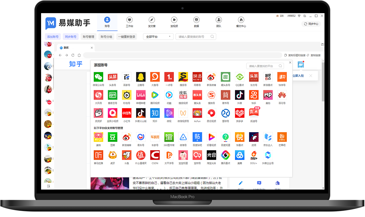 智能管理效率神器的功能进化论 当前主流的多账号管理效率神器已突破基础功能层面,向智能化运营解决方案演进。内容生产模块支持AI智能改写、多平台格式自适应、热点素材自动抓取等功能,大幅提升创作效率。账号管理模块实现跨平台cookie独立存储、多账号安全隔离、异常登录实时预警等风控功能。以易媒助手为例,其创新的流量诊断解决方案可自动识别账号限流风险,并提供内容优化建议。数据分析模块突破单一账号分析局限,提供矩阵账号的流量对比分析、粉丝画像重叠度检测、爆款内容基因图谱等深度分析功能。